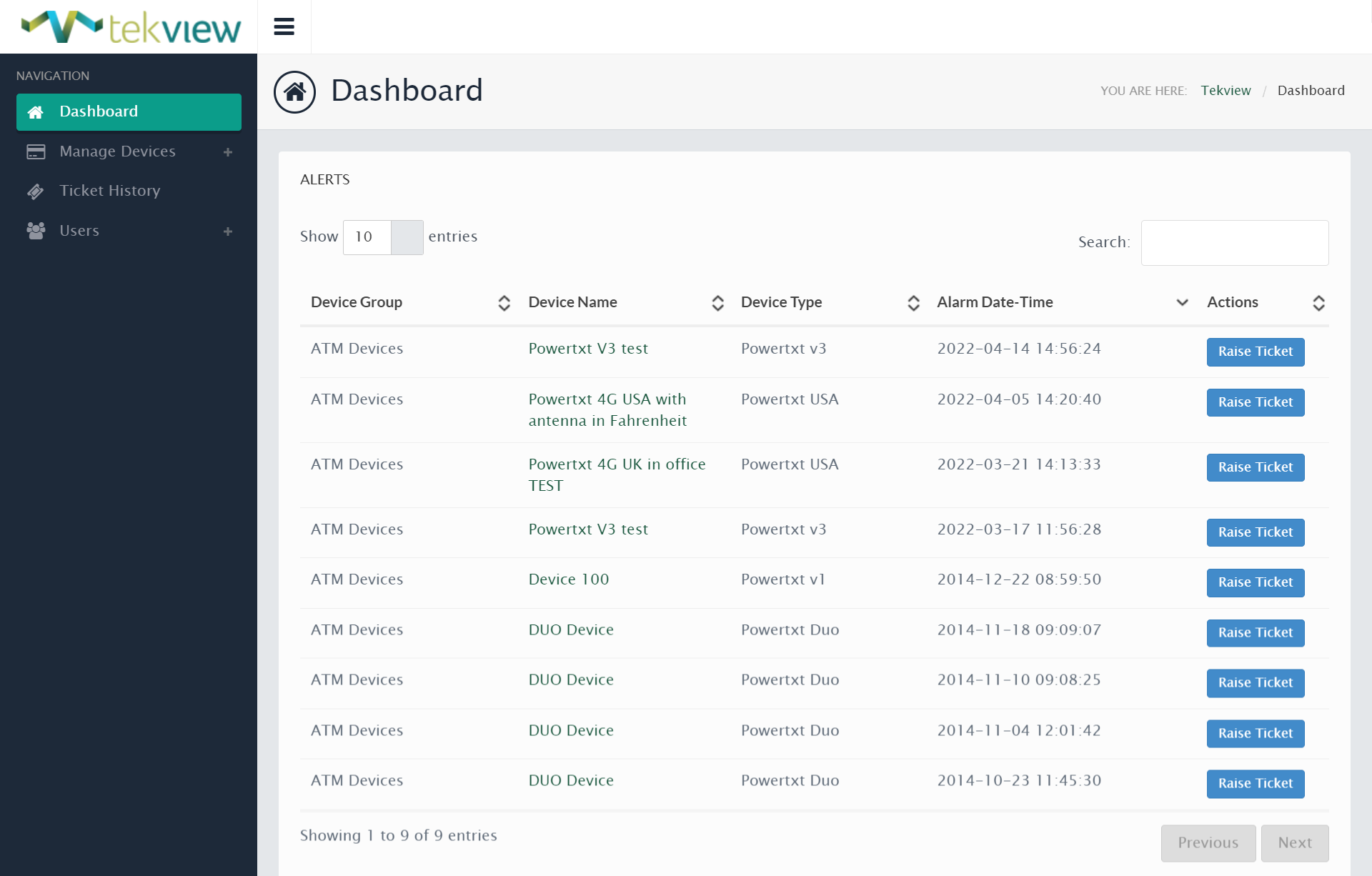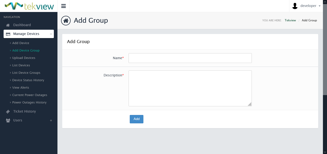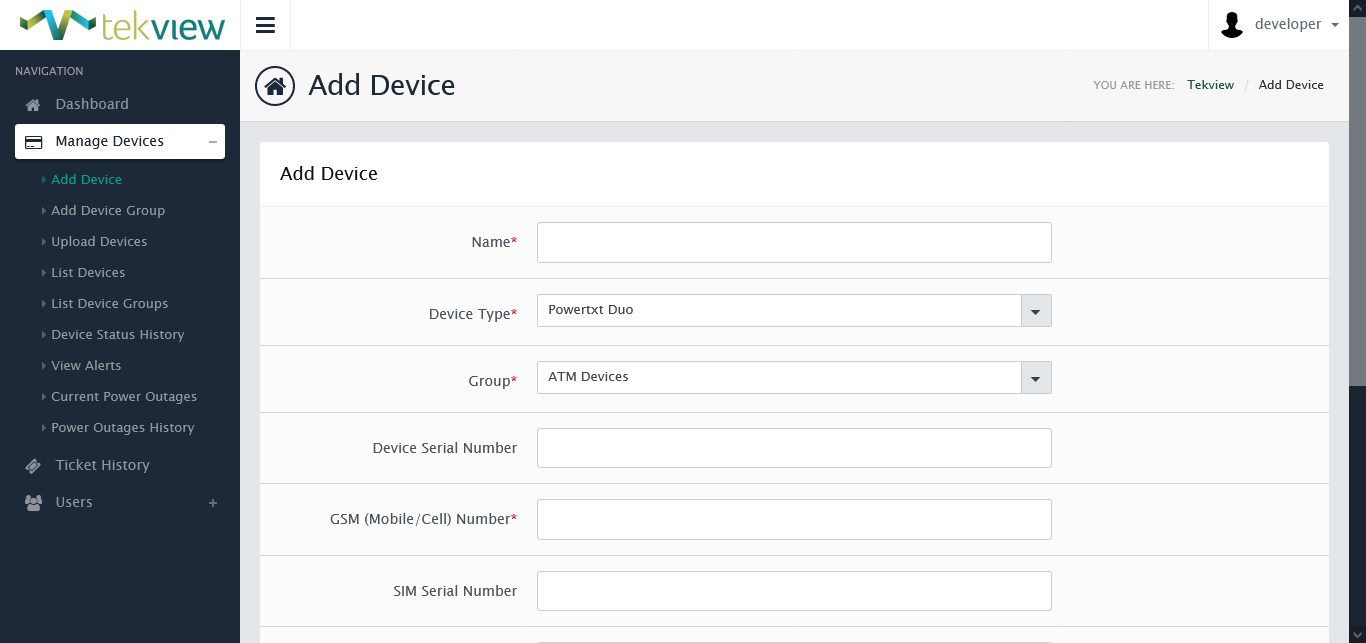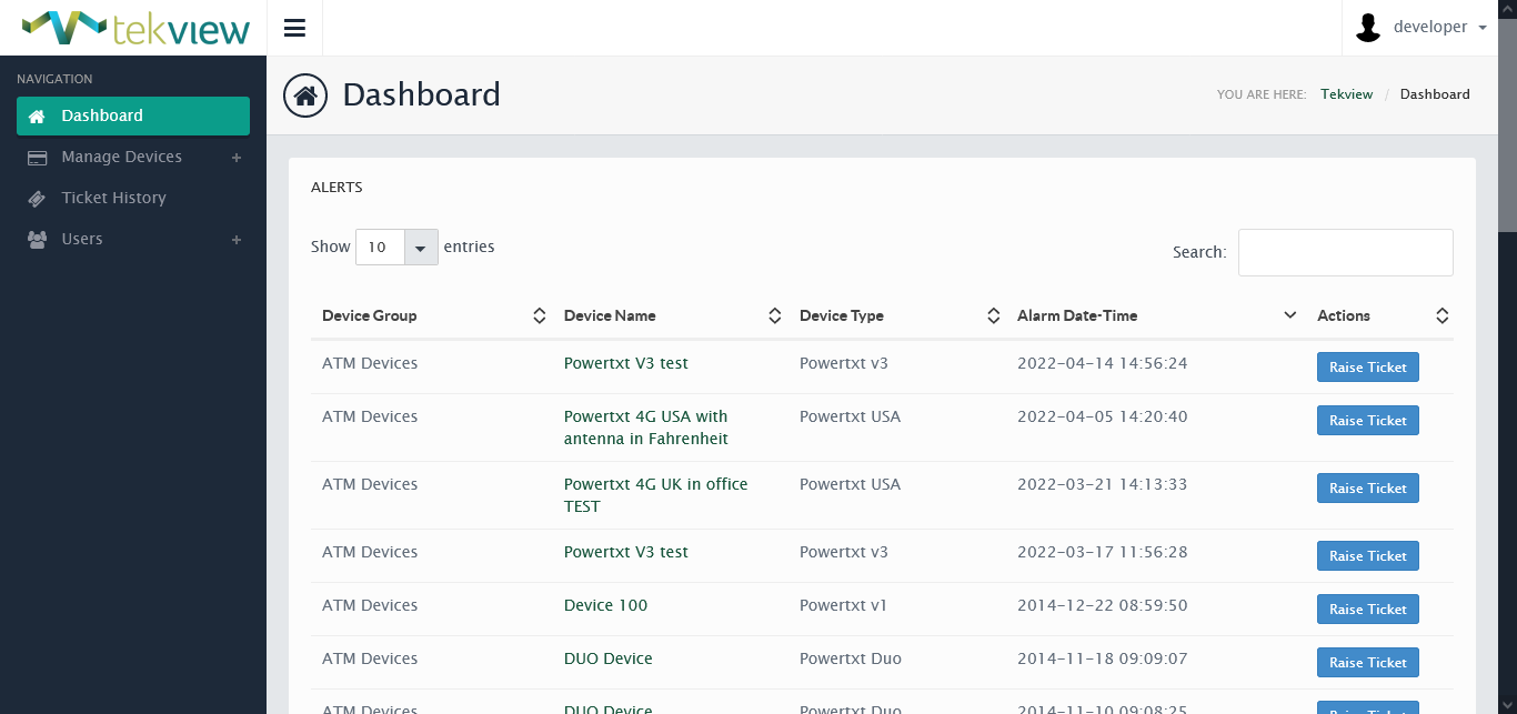 EstateView has two levels of control a 'Power User' and a 'Standard User', a Power User can control and manage the devices and a standard user has read-only access to the information. Powertxt automatically sends power loss & power restored alerts and when these are received into EstateView it automatically forwards these as email alerts to the main power user.