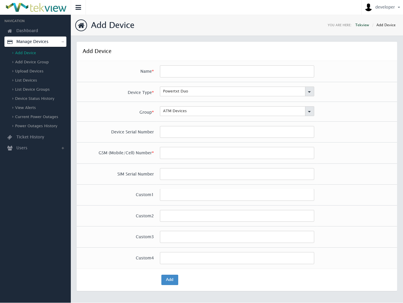 EstateView controls all Powertxt units from one central system, the control commands are embeded in EstateView so you can turn equipment on/off and reboot your equipment remotely (each unit can be controlled individually or many simultaneously). You can group devices and as well as the standard fields for the device’s individual information there are also 4 custom fields for any additional information relevant to your business.