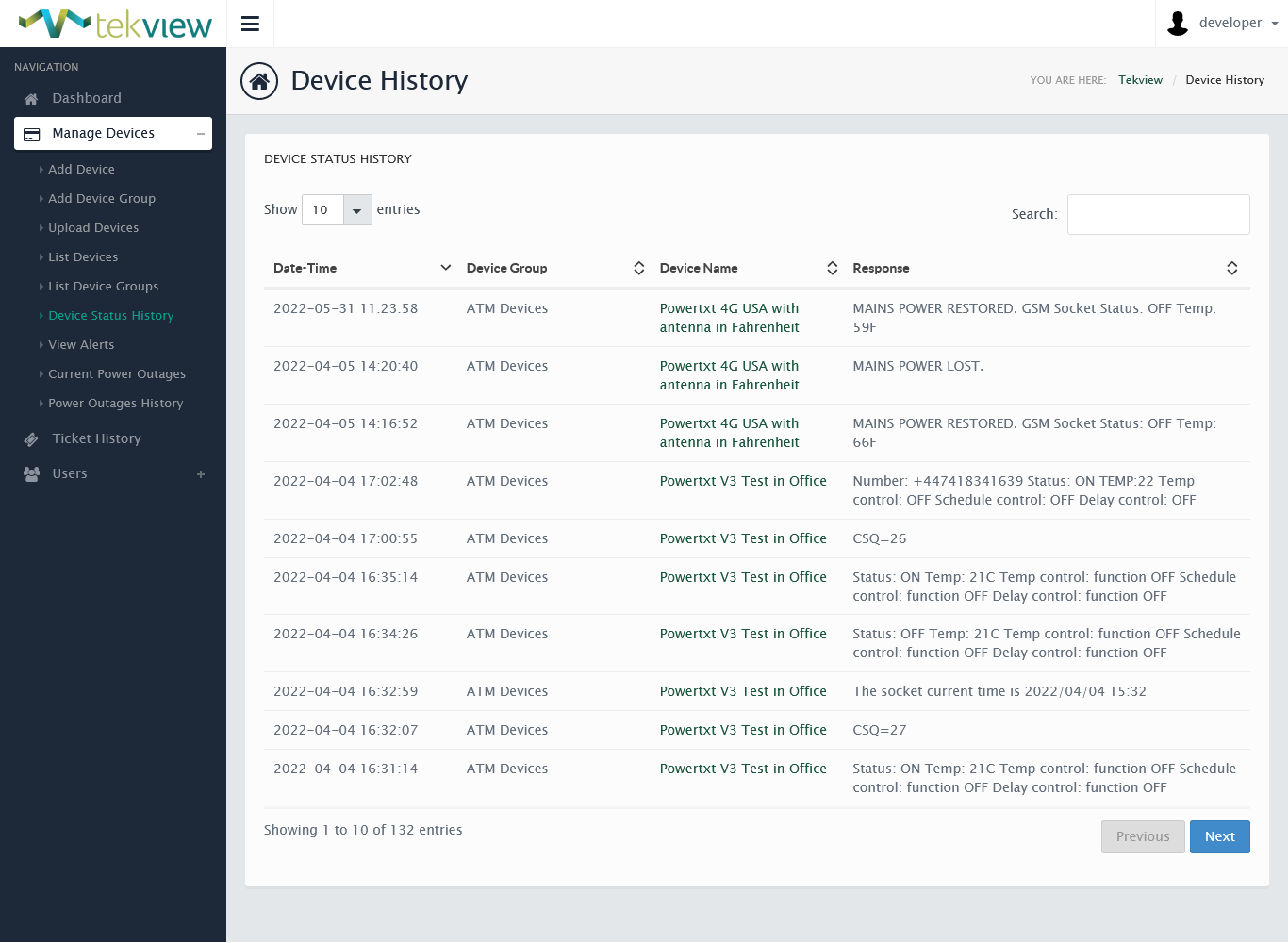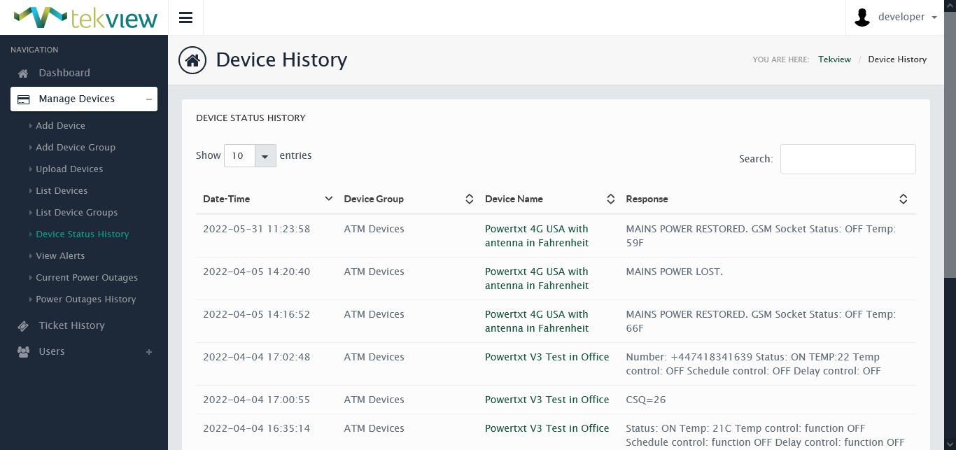 EstateView still works in exactly the same way as if you were using a mobile/cell phone, it sends outbound text messages from EstateView to your Powertxt devices and the devices send text messages back into EstateView. An unlimited number of devices can be controlled and it can be accessed online from anywhere.